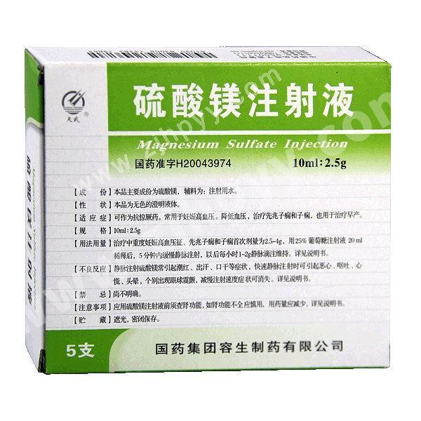 镁离子能直接抑制子宫平滑肌,可治疗早产。硫酸镁静脉注射与滴注,首次4克,用25%葡萄糖20毫升溶解5分钟内缓慢注射,以后用25%硫酸镁60 毫升,加于5%葡萄糖1000毫升静脉滴注,每小时2克,直到宫缩停止后2 小时。