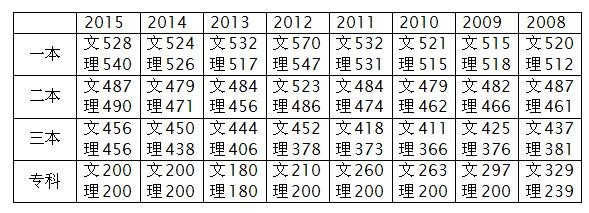 江西历年高考相关批次录取控制线