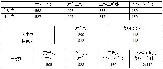 各类招生录取最低控制分数线