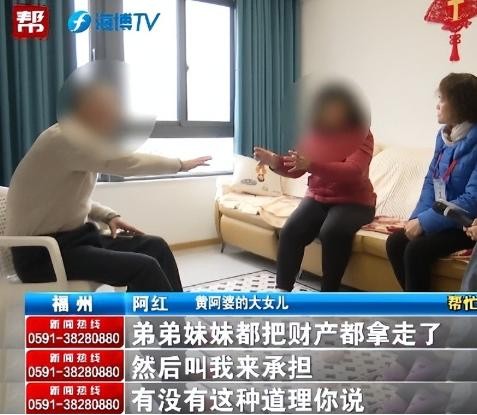 无奈黄阿婆又回到了小女儿的家里,小女儿见哥哥姐姐都不愿意出面照顾母亲,就寻找到了调解员寻求帮助,刚见到调解员小女儿都哭的上气不接下气。