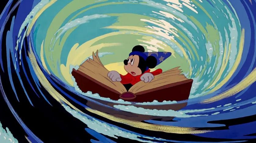 1940年迪士尼推出第三部经典影片《幻想曲》,虽然在票房上惨遭滑铁卢,但是它的艺术成就依然是今天人们所热议的,《幻想曲》全片依据不同的乐曲被划分为8小段,其中除了魔法师与学徒的段落有完整的故事情节,其他几段都来自不同动画师天马行空的想象。