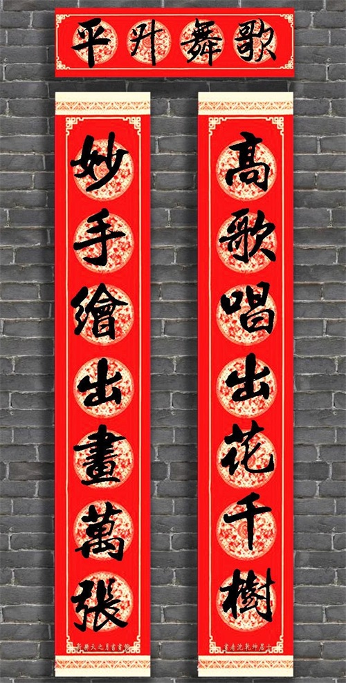 春联,是中华民族传统的岁时节令之一。它起源于古代祭祀活动,随着历史的变迁,逐渐演变成为表达人们祈求幸福、祥和、平安的文化活动。春联是一幅对联,通常由两句对仗的诗句组成,内容贴近生活,寓意深远,富有美好的祝愿。它不仅是文化传承的一部分,更是中华民族传统文化的重要组成部分。 春联不仅是一种文化传承,更是中华民族传统文化的重要组成部分。