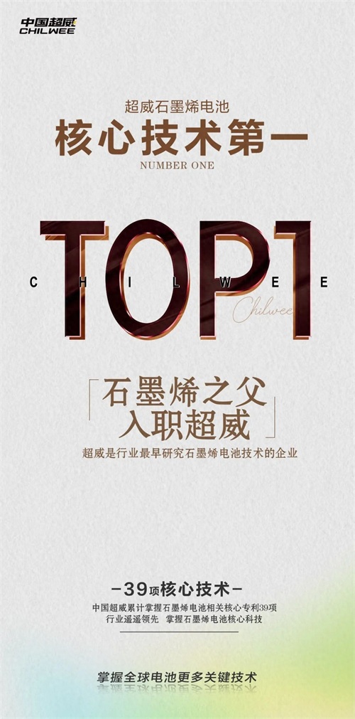 躬身入局,多年深耕,超威已牢牢掌握石墨烯电池核心技术,更是以签约世界石墨烯之父安德烈·海姆为超威技术顾问,累获39项石墨烯核心技术专利傲居行业核心技术第一,彻底夯实“正宗石墨烯,核心在超威”行业地位。