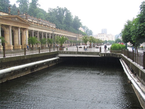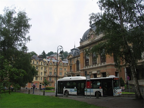 卡罗维发利(Karlovy Vary),捷克城市,人口六万多,建于1349年。小城距布拉格以西约120公里。这里森林茂密,流水淙淙,静静的特普拉河穿城而过,温泉散发出的袅袅热气给冬日的小城平添了些朦胧迷离的色彩。小城坐落于山谷之间,沿河两侧依山而建,一幢幢漂亮的楼房在绿树的掩映下,尽显巴洛克式、洛可可式、拜占庭式和新古典主义时期建筑的风格。在翠柏丛生、四季长青的山坡上,筑有层层楼阁亭台。建筑物依山傍水,错落有致,尖塔、绿树、红瓦和白墙相互映衬,雕像和纪念碑处处可见。