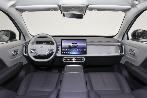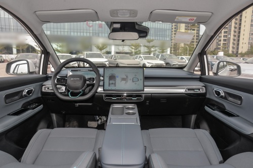 相较之下,AION Y Plus的内饰走的是简洁实用路线。中控台采用分层式设计风格,搭载14.6英寸悬浮式中控大屏,内置ADiGO智能座舱系统,支持4G网络、导航及OTA远程升级。搭载高通骁龙6125芯片,保证了系统的流畅运行和智能语音交互的迅速响应。座椅材料选用高品质织物,触感柔软且透气性良好。虽然座椅并未配备加热通风功能,但织物的亲肤性和良好的吸湿性能能满足日常通勤的舒适需求。后排设计亮点在于纯平地板,再配合1870毫米超宽车身,后排乘客即便是满座状态下也可以伸展双腿,膝部空间宽敞,可自由跷起二郎腿。车内装备包括四门一键升降车窗及PM2.5过滤系统,关注的多为实用配置。内饰配色方面,新增的“浅雾青”主题采用低饱和度的莫兰迪色系搭配哑光金属饰条,兼具科技感与温馨居家氛围,让驾乘者在车内感受到放松和舒适。