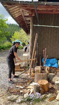 视频中,身着休闲装的蒙嘉慧,竟在日本农村挥汗劈柴。