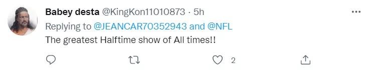和现场氛围一样,网友也在推特上因为超级碗而欢腾起来了。#超级碗的字条瞬间冲上了推特的热搜榜。