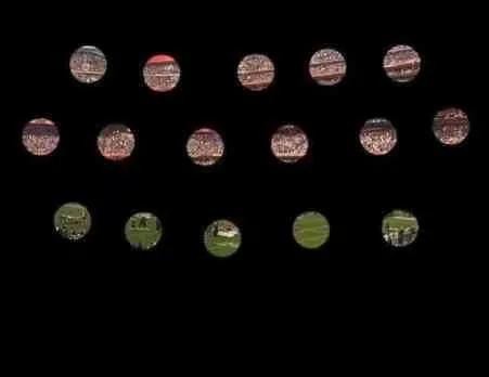 而且全黑头套只有眼前几个洞洞可以透气和看东西,所以网友便开始吐槽起侃爷的造型,还弄了梗图来展示侃爷看超级碗的视角。