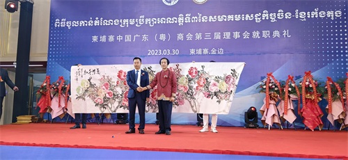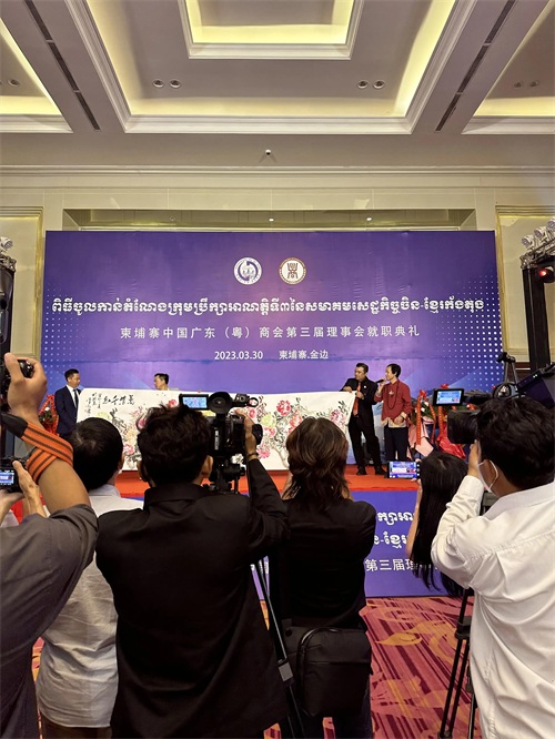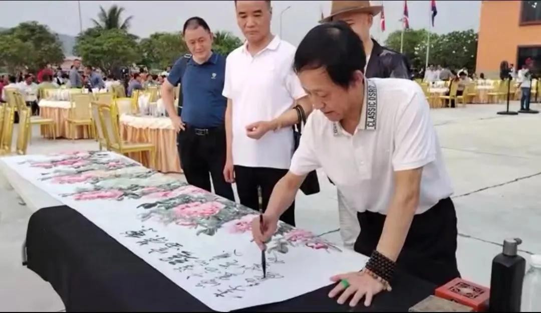 柬埔寨新年期间受邀赴云壤海军基地与海军司令当地五千多群众进行了互动,并现场表演了五米中国绘画艺术,惊艳了在场观众。