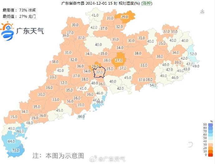 而昨日广东15时大部分地区相对湿度只有“2”字和“3”字开头,小伙伴们记得吨吨灌水!