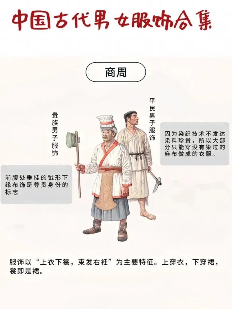 商代服饰材料主要为皮、革、丝、麻,样式多为上衣下裳,颜色以黑、白、红为主。