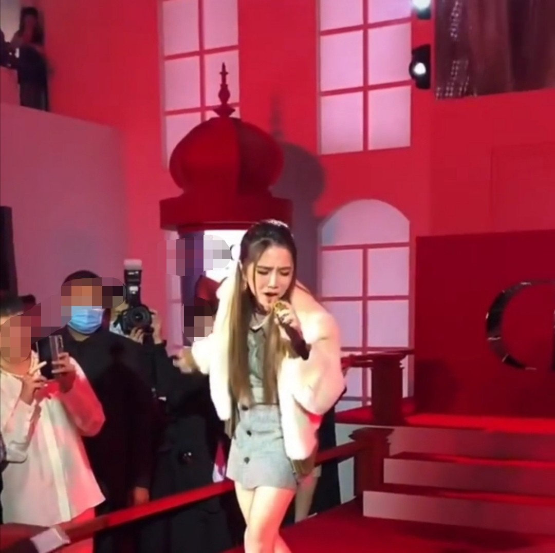 10月25日晚,有网友晒出了邓紫棋现身某品牌活动并在活动场馆献唱的视频。