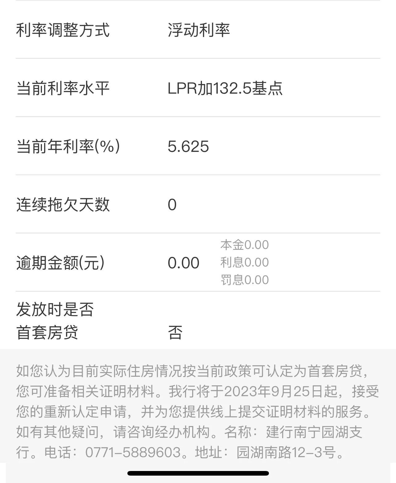 这里就可以清楚的看到你的住房贷款信息,目前最主要是看最底部的一条信息【发放时是否首套房贷】如果显示是 “是”的话那就坐等9月25日建行自动降低你的房贷利率;显示是“否”可能情况就一点复杂。