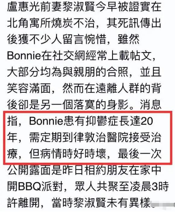 了解到,黎淑贤晚年患上了严重的心理疾病——忧郁症,此病折磨了她整整20余载。