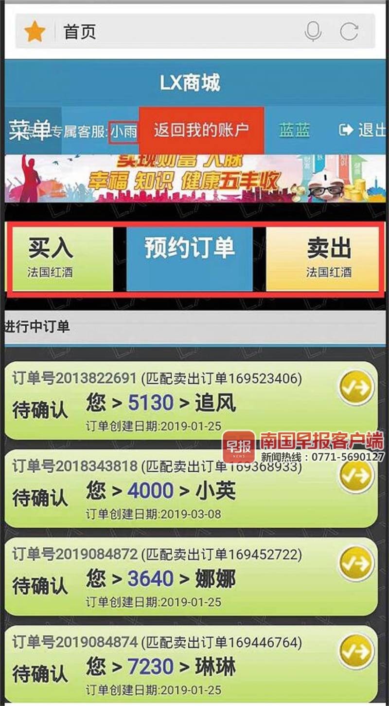 3月20日,南国早报客户端记者打开徐先生“LX商城”App账号,上面可看到买卖法国红酒的选项,每瓶1000元,购买3瓶后才能成为会员。
