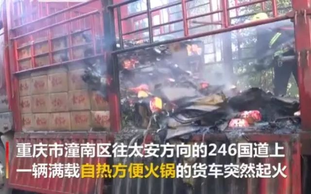 2吨自热方便火锅半路起火,提前熟了!网友:强忍香味扑灭了