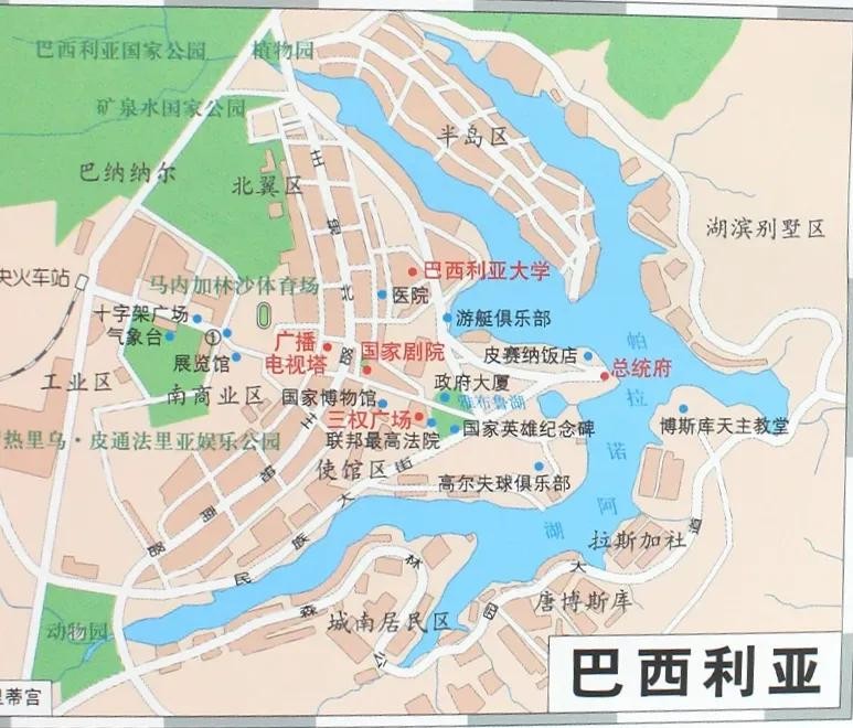 巴西首都是巴西利亚,位于巴西内陆地区,在巴西高原上,那里以前是荒野,为了开发内陆才迁都过来的。我还记得在中学地理课本上有关于巴西利亚的介绍,当时第一眼就看到巴西利亚有个好大的湖泊,地理书上还拿巴西利亚当案例,说这是科学规划的新城市。
