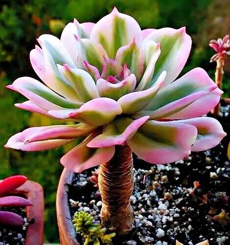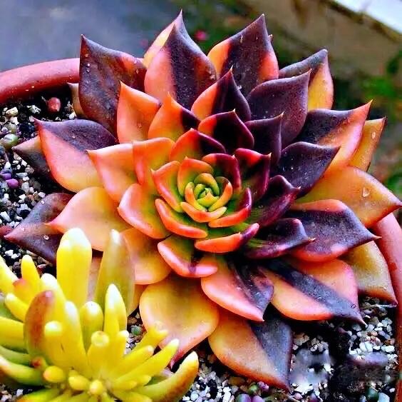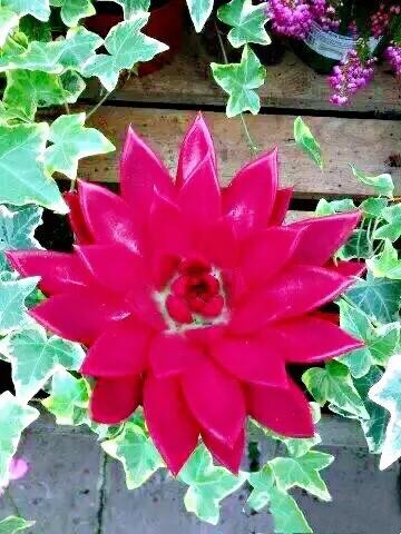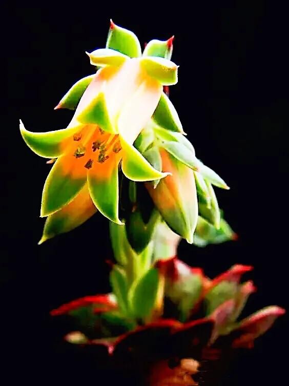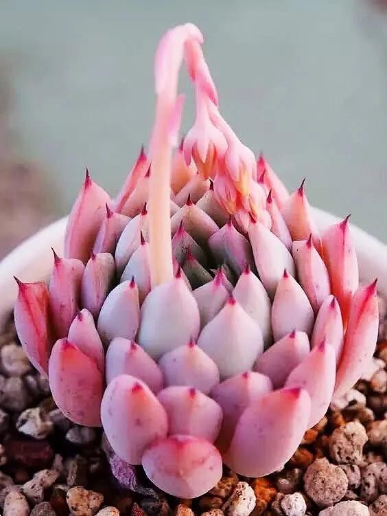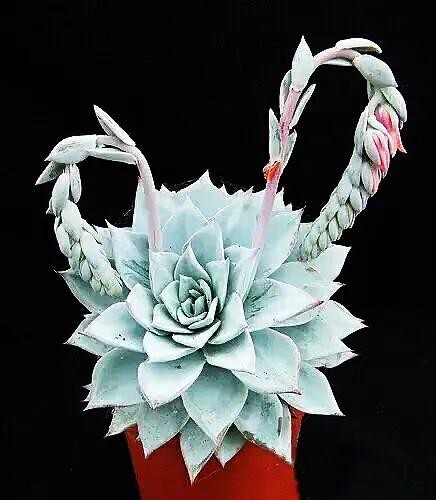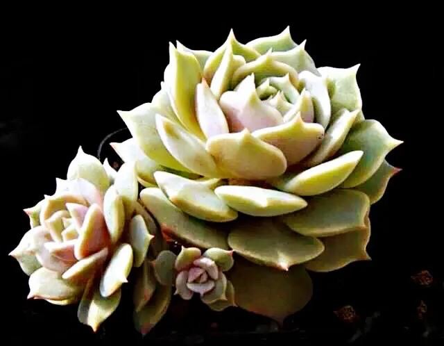石莲花又名宝石花,民间泛指莲花座造型的多肉植物。例如:东美人、玉蝶、胧月、黑王子等。其中玉蝶是景天科石莲花属的代表。石莲花肉质厚实,叶片形状恰如宝石一般,多枝叶片重叠簇生在一起,莲座状叶盘酷似一朵盛开的莲花而得名。被誉为"永不凋谢的花朵"。形态独特,养护简单,很适合家庭栽培。置于桌案、几架、窗台、阳台等处,别有情趣。