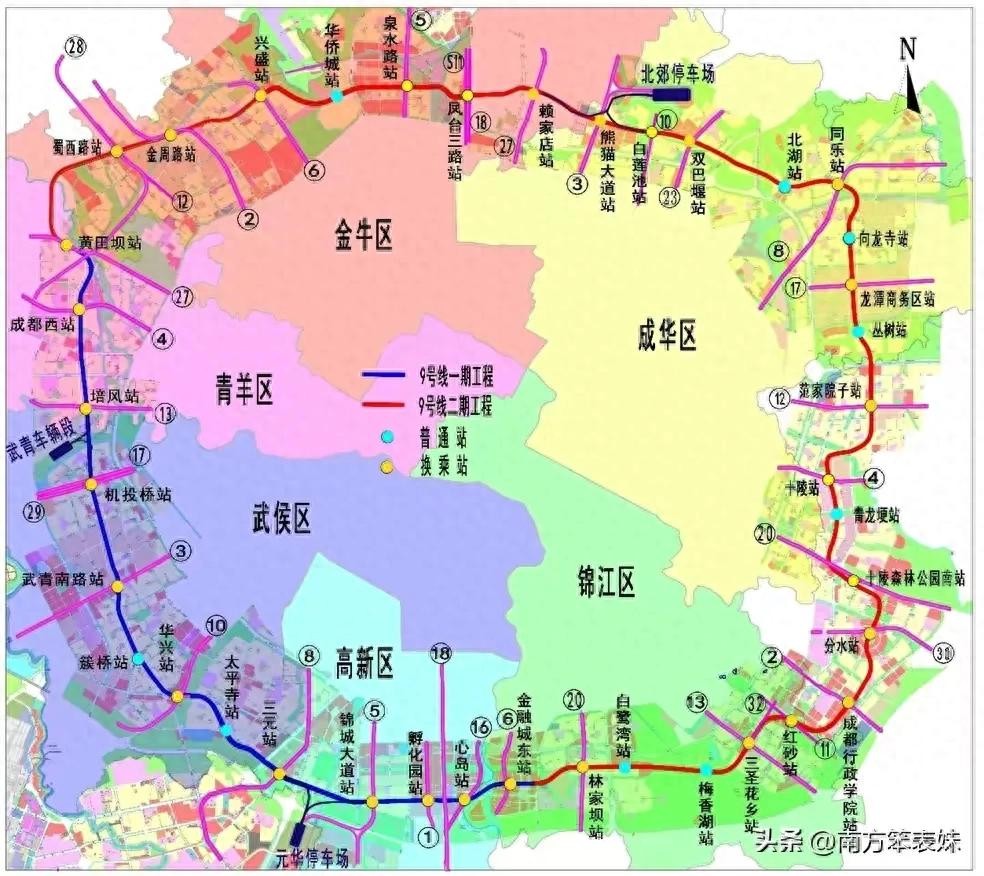 9号线位于成都市三、四环之间的一条环形线路,是城市快速轨道交通层次中的市域快线,规划线路全长约67.3km,均为地下线,设站39座,平均站间距1.77km;设1段2场;拟分二期建设,其中一期工程已开通运营。这条线,经过你家门口么?