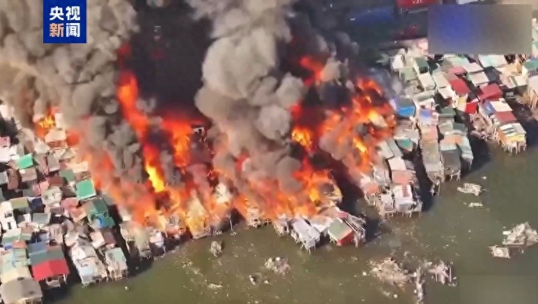 菲律宾马尼拉一居民区发生大火 数千人无家可归