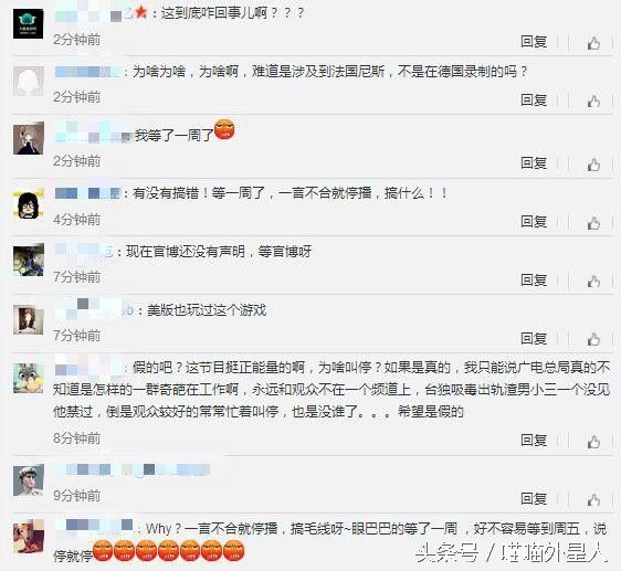 心心念念等了一周,就想看晶刚夫妇如何甜出新高度,金星和汉斯的相爱相杀,刘翔更好的表现,突然通知不能播,引得网友纷纷吐槽。