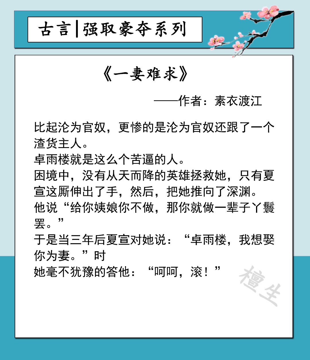 第三本:《一妻难求》作者:素衣渡江