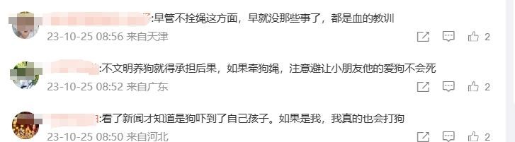 但也有对狗无感的网友,觉得这些爱狗人士是同情心过于泛滥,虽然父亲的行为或许是过激了,但自有法律来判断他是否故意损毁狗主人的财物,爱狗人士没有理由去网暴甚至线下去骚扰这对父女。