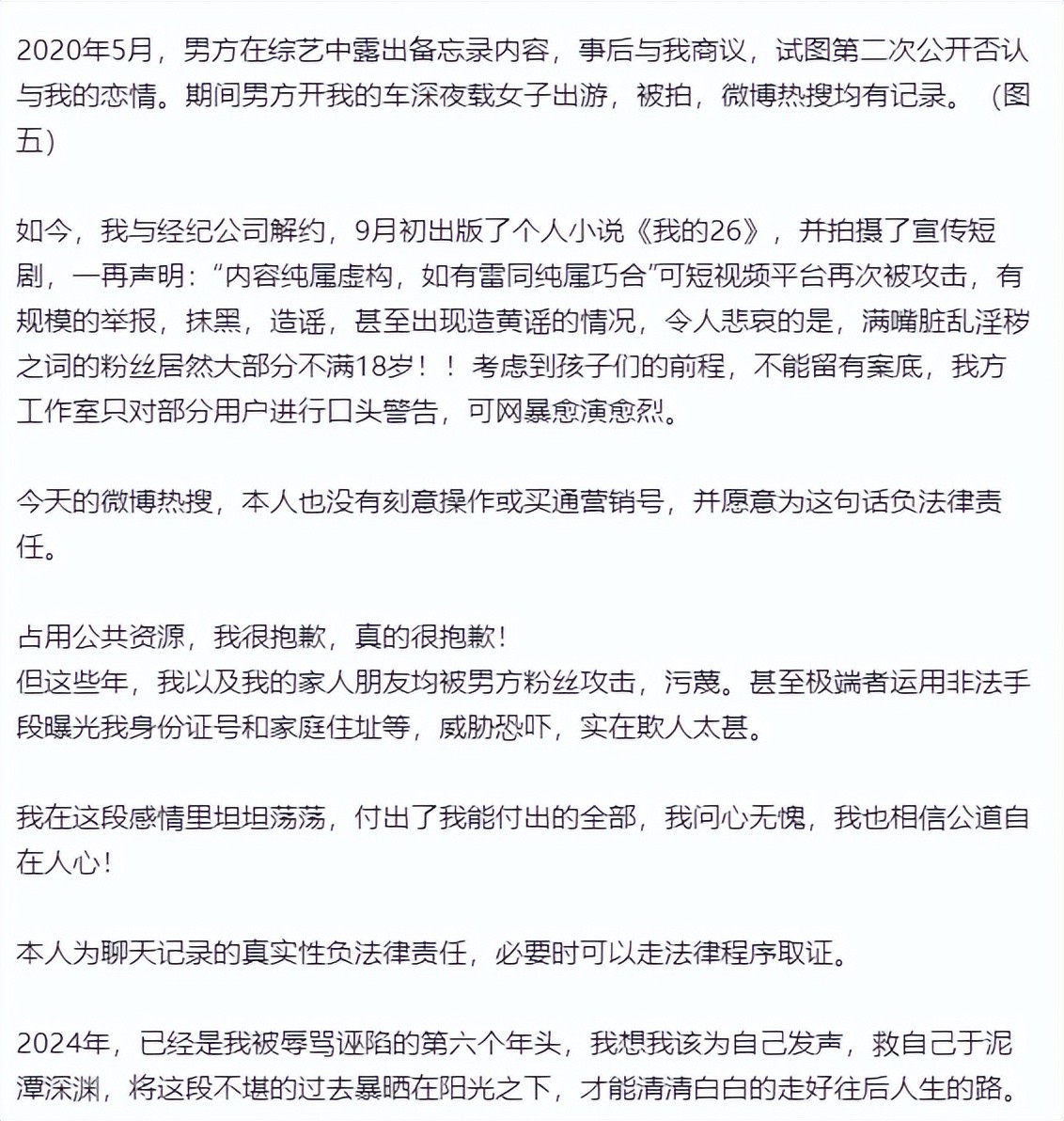 还提到秦霄贤急用钱,她和朋友就自己掏钱,为秦霄贤运营衣服品牌,而秦霄贤只需负责穿着出街拍照,虽然事无巨细,所有事情都要负责,但是辛雨锡并没有觉得委屈。然而就在衣服品牌出现问题的时候,秦霄贤却选择了隐身,一切问题由女方来承担,甚至包括男方粉丝的网暴。
