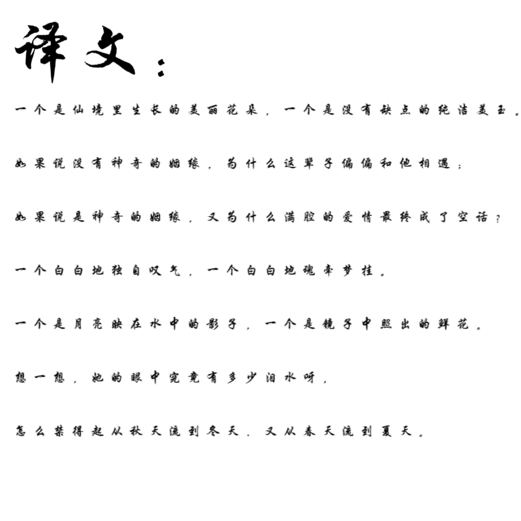 译文:一个是仙境里生长的美丽花朵,一个是没有缺点的纯洁美玉。