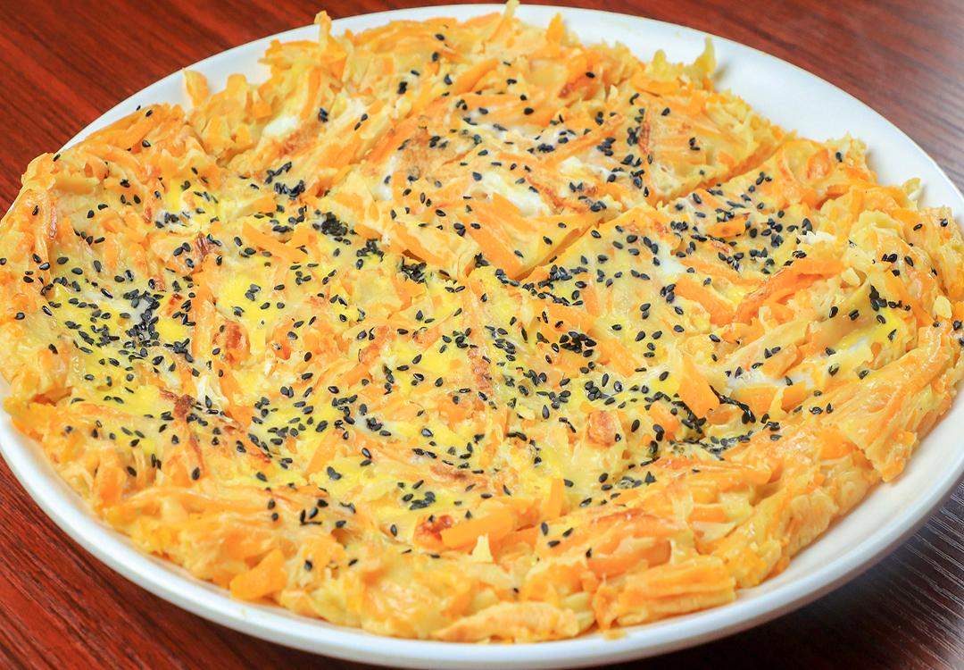5.好了,一道营养丰富的南瓜丝煎饼就做好了。