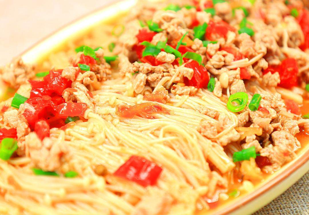 6.好了,一道简单易学的肉末金针菇就做好了。