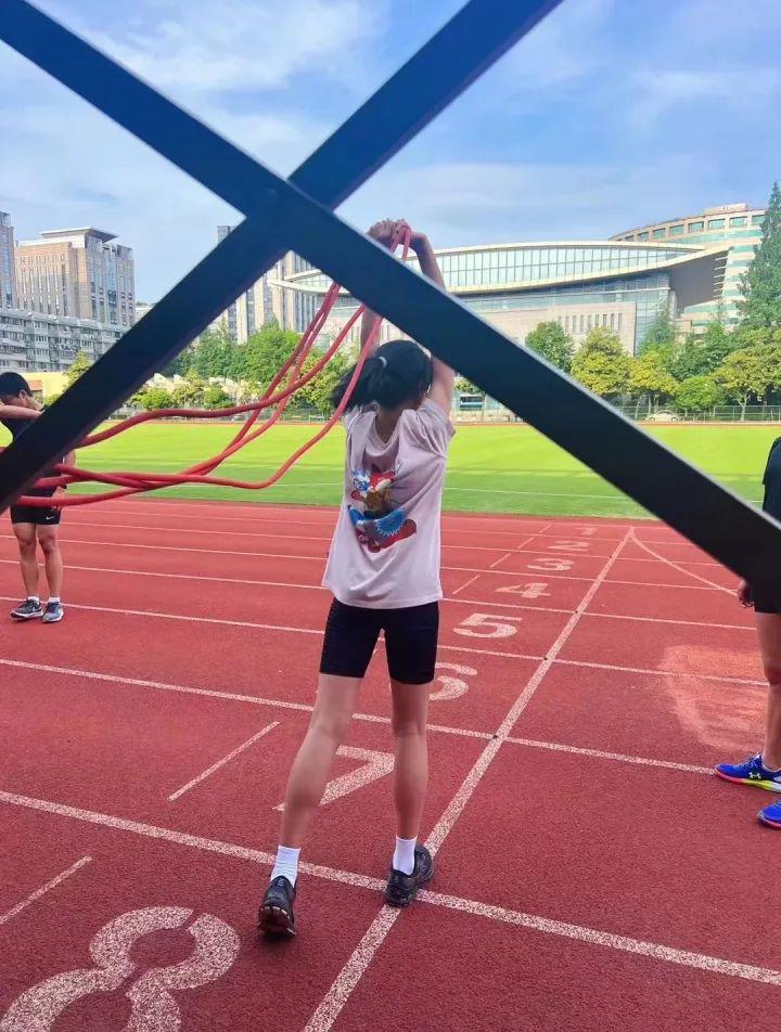 每天早上是属于她的训练时间,6 点 10 分,就会看到她准时出现在操场上。一个小时的训练,有体能,也有专项,雷打不动。