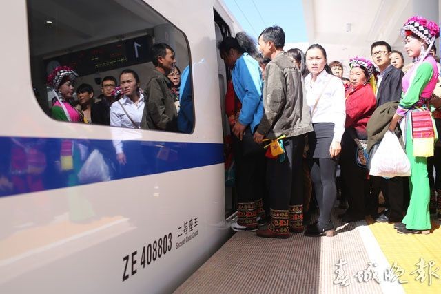 据悉,自2016年12月28日沪昆客专昆明至贵阳段、云桂铁路昆明至百色段正式通车运营,云南迈入高铁时代,接入全国高铁网。而此次首发的“弥勒号”高铁文化旅游列车,通过在列车上进行少数民族服饰展演、旅游商品服务、特色农产品推介、民族文化宣传等活动,将打造传播弥勒旅游文化资源的移动长廊。