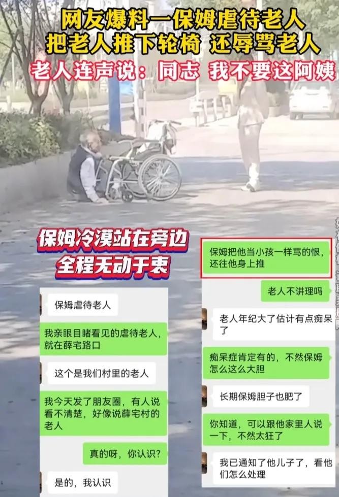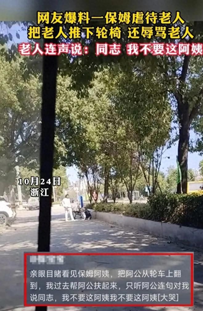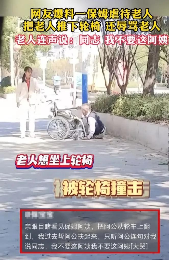 近日,浙江温州发生一起保姆虐待老人事件,引发社会广泛关注。据网友爆料,一名保姆在照顾老人时,不仅将老人推下轮椅,还让老人遭到轮椅撞击,致其受伤。