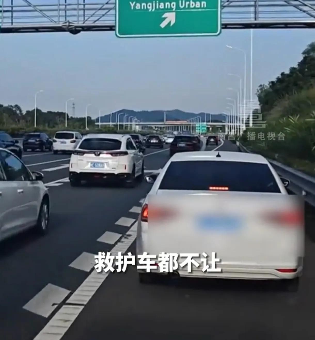 生命通道被堵!阳江高速现白色轿车占应急车道,救护车受阻惹众怒