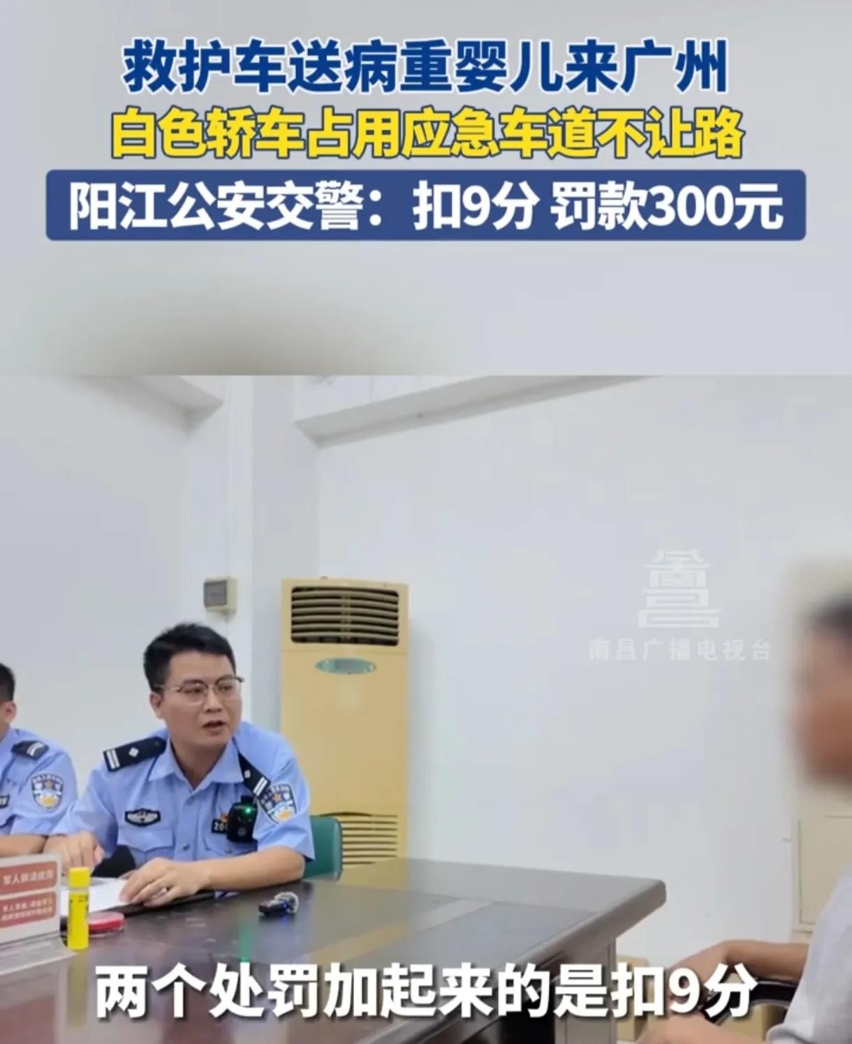 然而,就在救护车争分夺秒地与时间赛跑时,一辆白色轿车却肆意地停在了应急车道上,阻碍了救护车的通行。面对这一紧急情况,阳江公安交警迅速反应,赶赴现场进行处理。经过调查取证,交警部门依法对白色轿车驾驶员进行了严厉的处罚:扣9分,罚款300元。