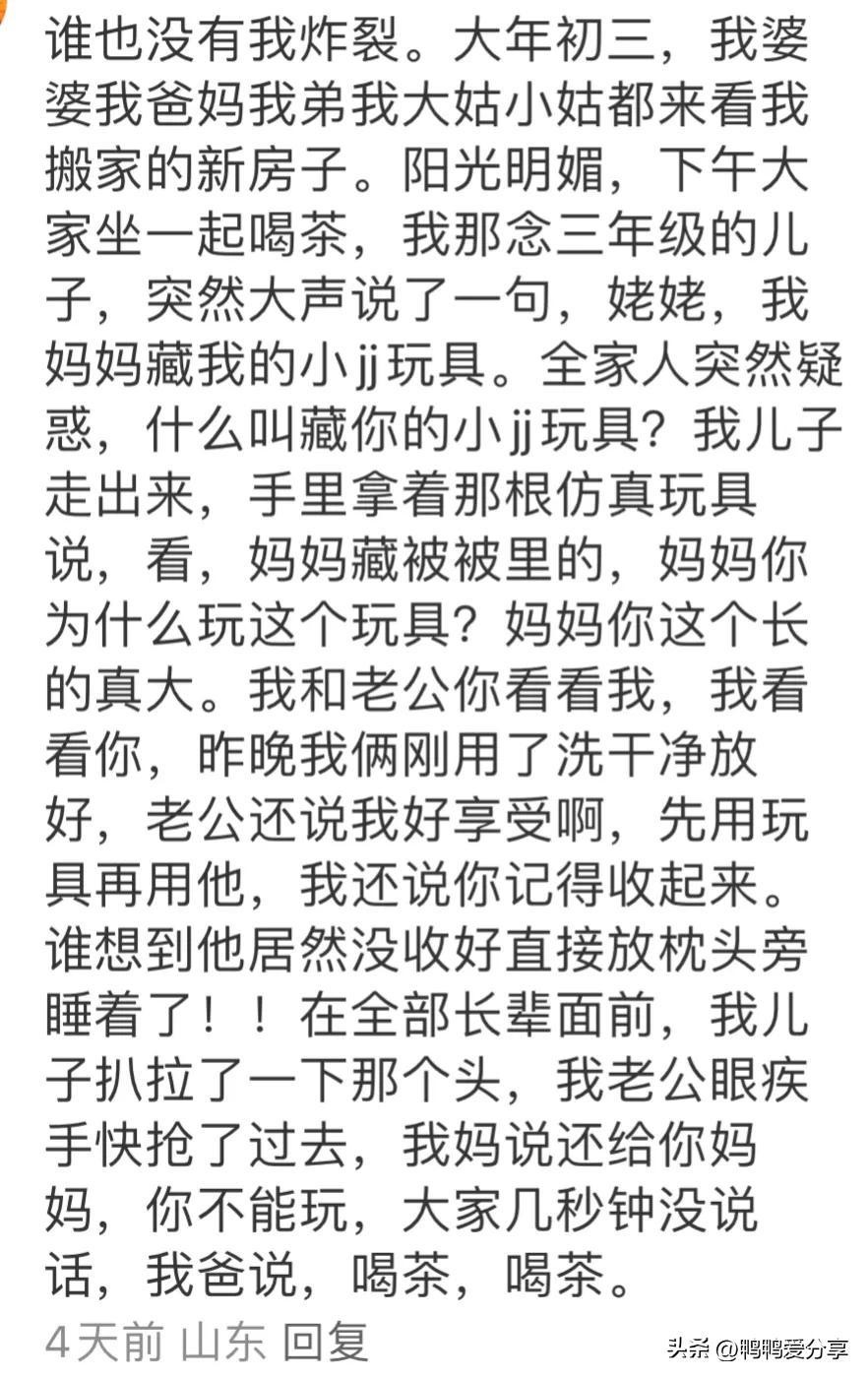 02、在全部长辈面前,我儿子扒拉了一下那个头,我老公眼疾手快抢了过去,我妈说还给你妈妈,你不能玩,大家几秒钟没说话,我爸说,喝茶,喝茶。