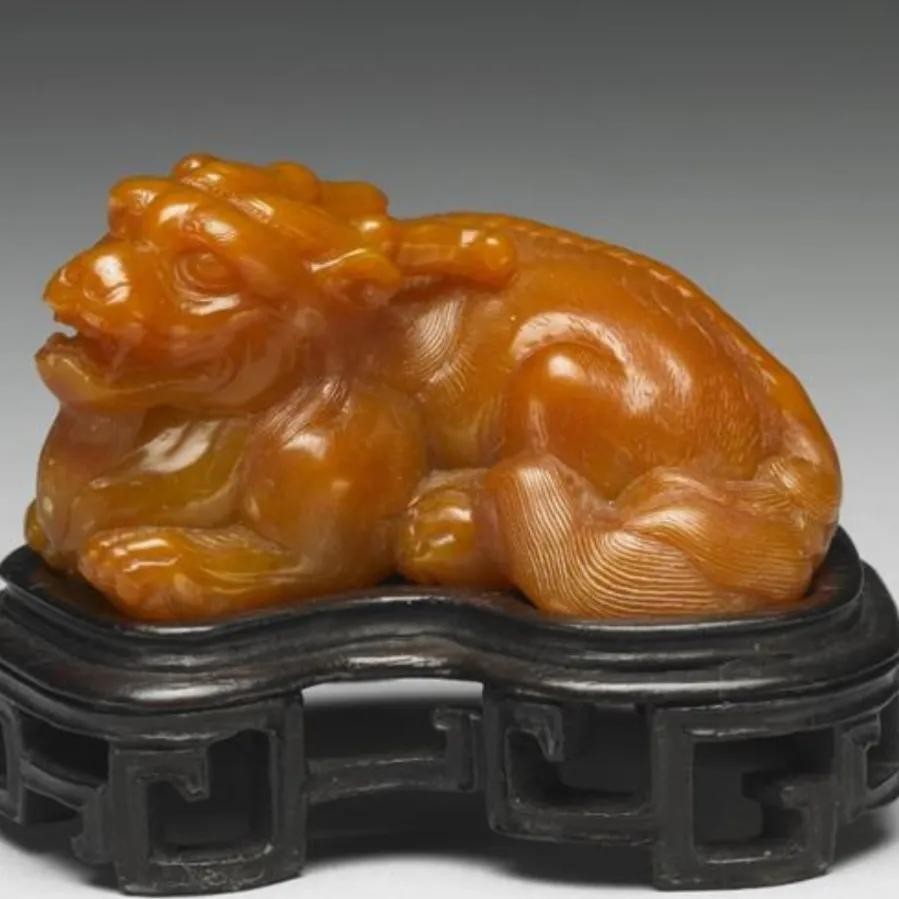 石质、象牙质的镇纸也有精品,像清代田黄石雕的异兽镇纸,