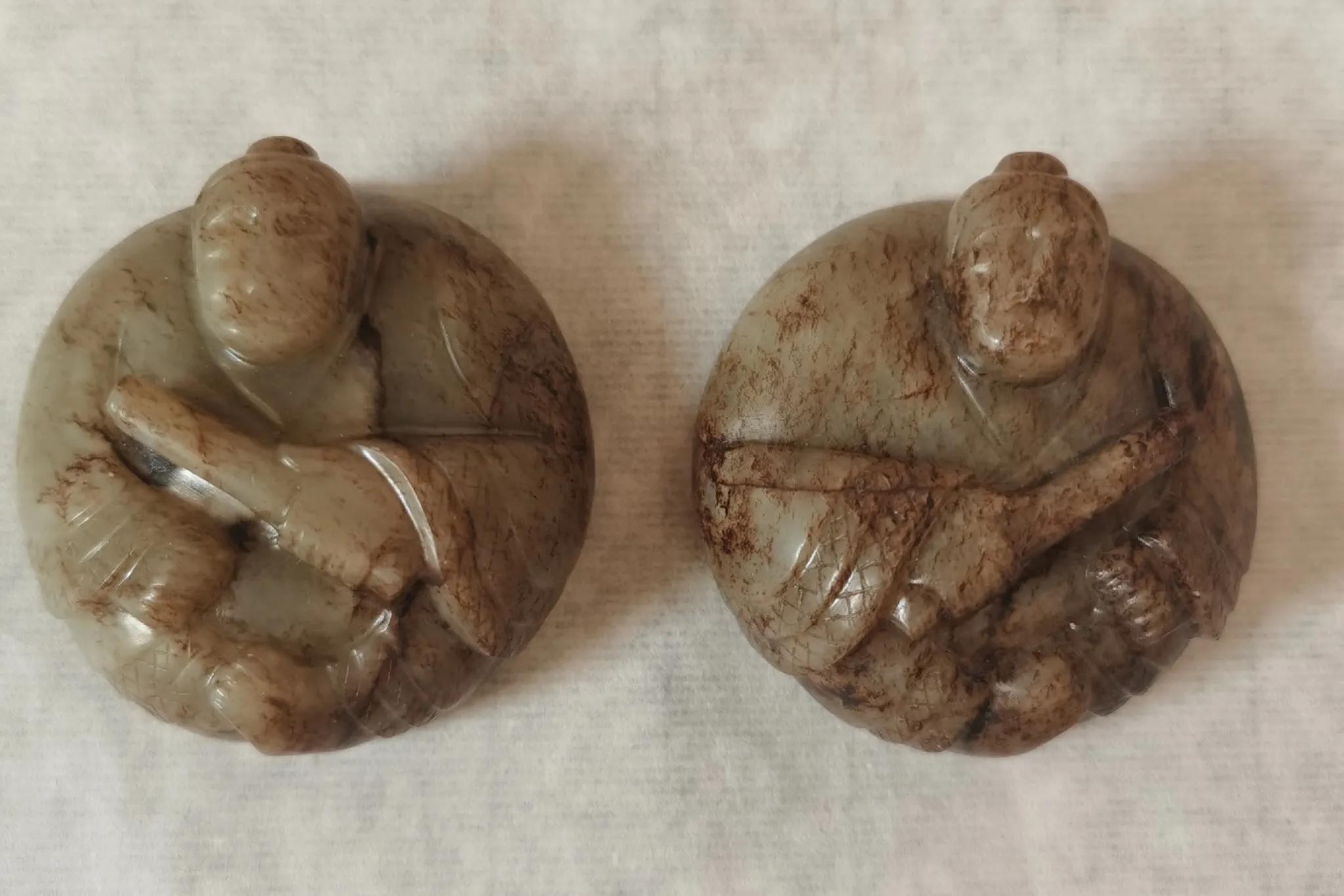 其次是动物、人物的立体形象。此外还有圆形和四方形或折叠的等。镇纸有成对和不成对的两种。特别是长方形的,一般成对的较多。这种形制的镇纸因为形式普通,多在表面装饰上下功夫,有的在一对镇纸上刻写对联、花卉等。欢迎在评论区留言转发讨论。有点儿意思。