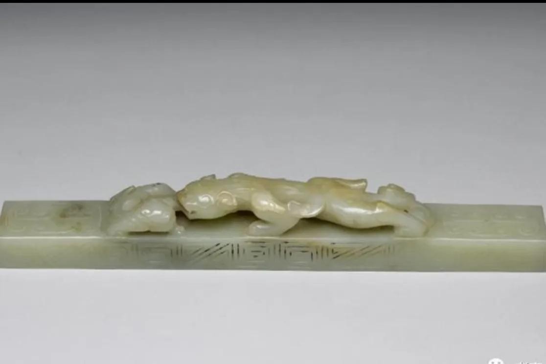 弘扬中华文明,展现文化自信。大家好!我是太足,今天为大家展示几个馆藏镇纸。镇纸是中国古代汉族传统工艺品,写字作画时用以压纸绢,读书时压书的艺术品。最初的镇纸是不固定形状的。镇纸的起源是由于古代文人时常会把小型的青铜器、玉器放在案头上把玩欣赏,因为它们都有一定的分量,所以人们在玩赏的同时,也会顺手用来压纸绢做书画或者是压书,久而久之,发展成为一种文房用具镇纸。镇纸也叫纸镇、文镇或镇尺、压尺、书镇等,镇纸自秦汉时期就有了,《南史.垣荣祖传》:“帝尝以白玉镇纸书案下安鼻为楯,以铁为书镇如意,甚壮大,以备不虞,欲以代杖”。可见镇纸至今已逾1500多年。宋元及以前的镇纸传世希见,到明清时代为盛。随着时代的发展,镇纸的材质、工艺、造型也在不断变化,早期镇纸材质大多是用青铜或玉制成,随着时代的进步又有铜、石、瓷、木、竹等种种材质。造型以高仕人物、以及动物牛、马、兔、鹿等形象。美国弗利尔美术馆藏唐代铜错金银兔形书镇,
