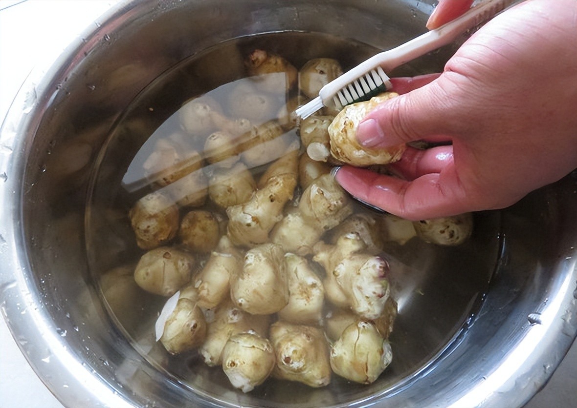 将洋姜放入清水中,用手轻轻揉搓,去除表面的泥土和杂质。然后,将洋姜放入筛子中,用清水冲洗干净,直到表面没有残留的泥土和杂质。
