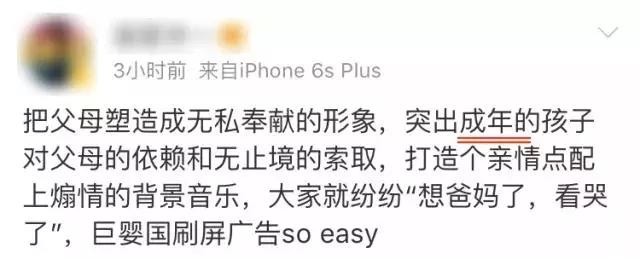 万事逃不开“火到深处必然黑”的规律。这则广告在刷遍朋友圈戳了很多人泪点的同时,也招来了一大批骂名。舆论两极分化非常严重。