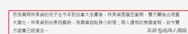2024年年初,孙兴透露自己与林美贞第二次复合失败,也就是说这次复合,应该是孙兴与林美贞的第三次“复婚”。