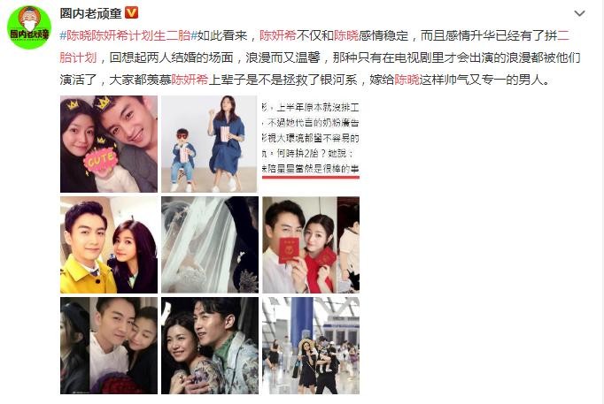 陈晓、陈妍希两人是在拍摄《神雕侠侣》的时候一见钟情,随后在2015年8月宣布恋情,在他们两个公开恋情后,很多网友并不看好这一对,但直到两人结婚之后,也都一直很幸福的在一起生活。