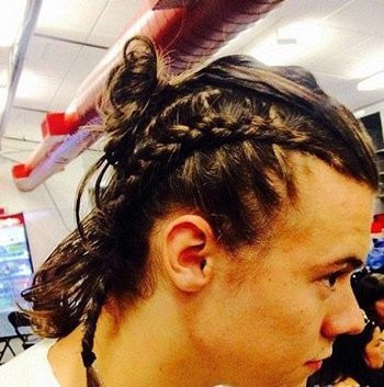 留着齐肩长发的男生们,长长的头发可以编织起来哟,左右两侧边发丝从前往后编织成侧蝎子辫,直至最后的发梢,中间的发丝向后梳理,扎成凌乱型的小丸子头,独特创意的男生个性侧边编辫子发型,只有个性不羁的男生方能hold住。