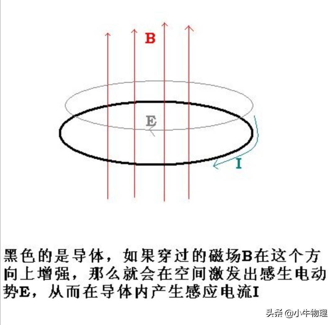 英国物理学家麦克斯韦认为,变化的磁场在空间激发的感生电场叫涡流电场例如:当B增大时感生电场的电场