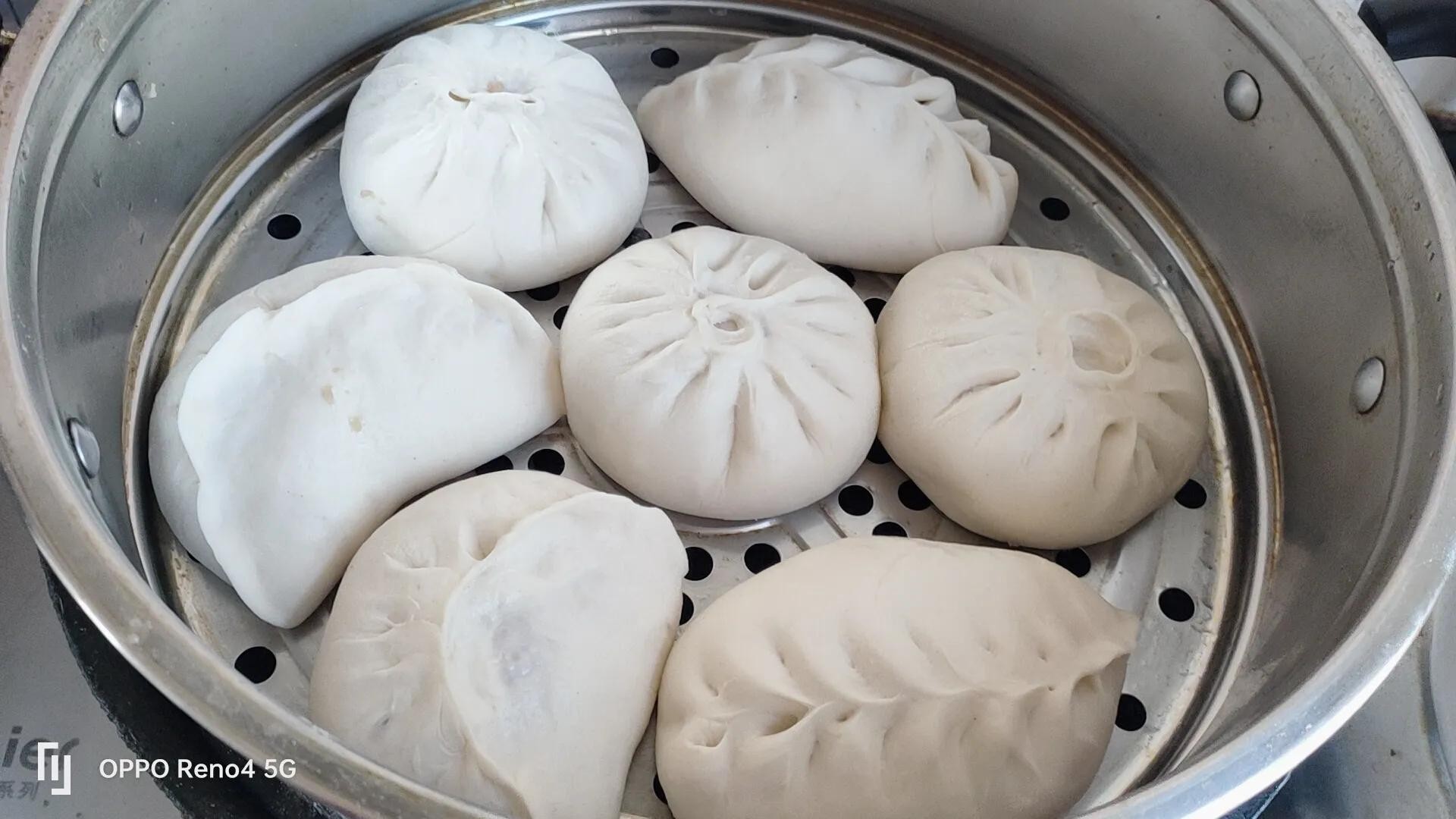 6,蒸制要凉水上锅,蒸好后再焖3分钟,不要开盖。这是包子不塌的小妙招。