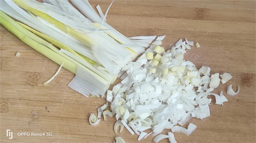 3,大葱,姜洗净切碎备用。