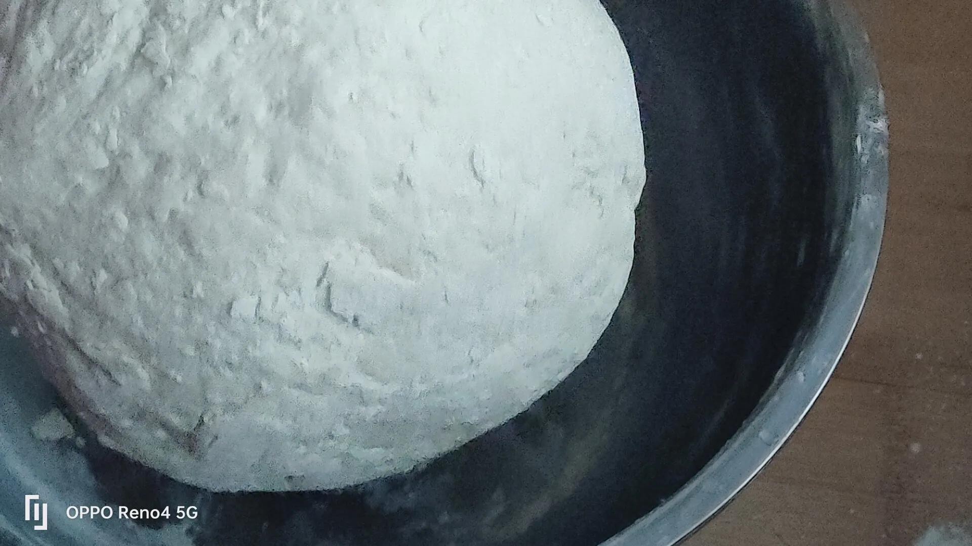 2,面提前发好。面粉中放适量的酵母粉,加白糖促进发酵。一定要把面发好,这是包子皮蓬松喧软的关键。