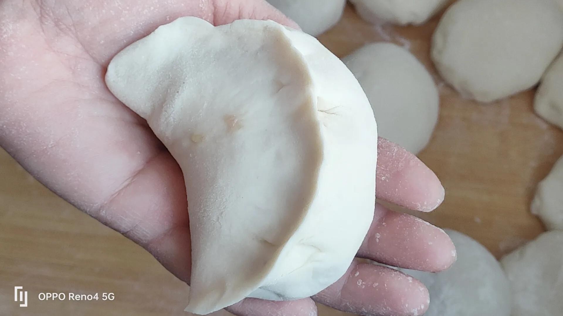 6,分好面剂,擀面皮,来包,包成你喜欢的形状。
